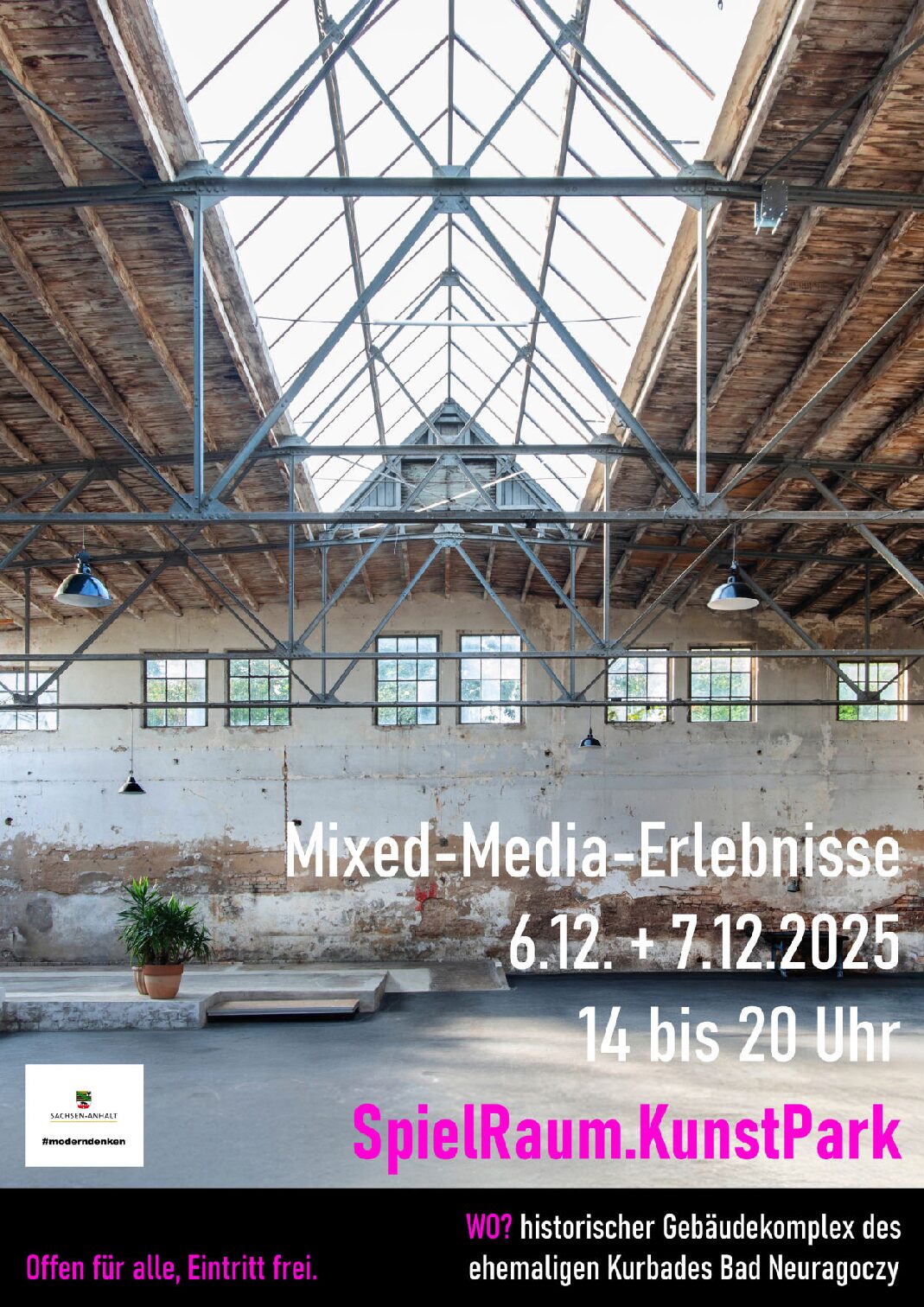 Ich lade zur Präsentation des Projekts „SpielRaum.KunstPark“ ein, die am 6. und 7. Dezember 2025 im ehemaligen Kurbad in Bad Neuragoczy stattfindet. Diese Veranstaltung ist ein Meilenstein des Projekts, das durch das Bundesprogramm Industriekultur unterstützt wird. Unsere Retrospektive zeigen wir, Kommunikation, Kunst, Kultur und Bildung auf kreative Weise miteinander verschmolzen haben.