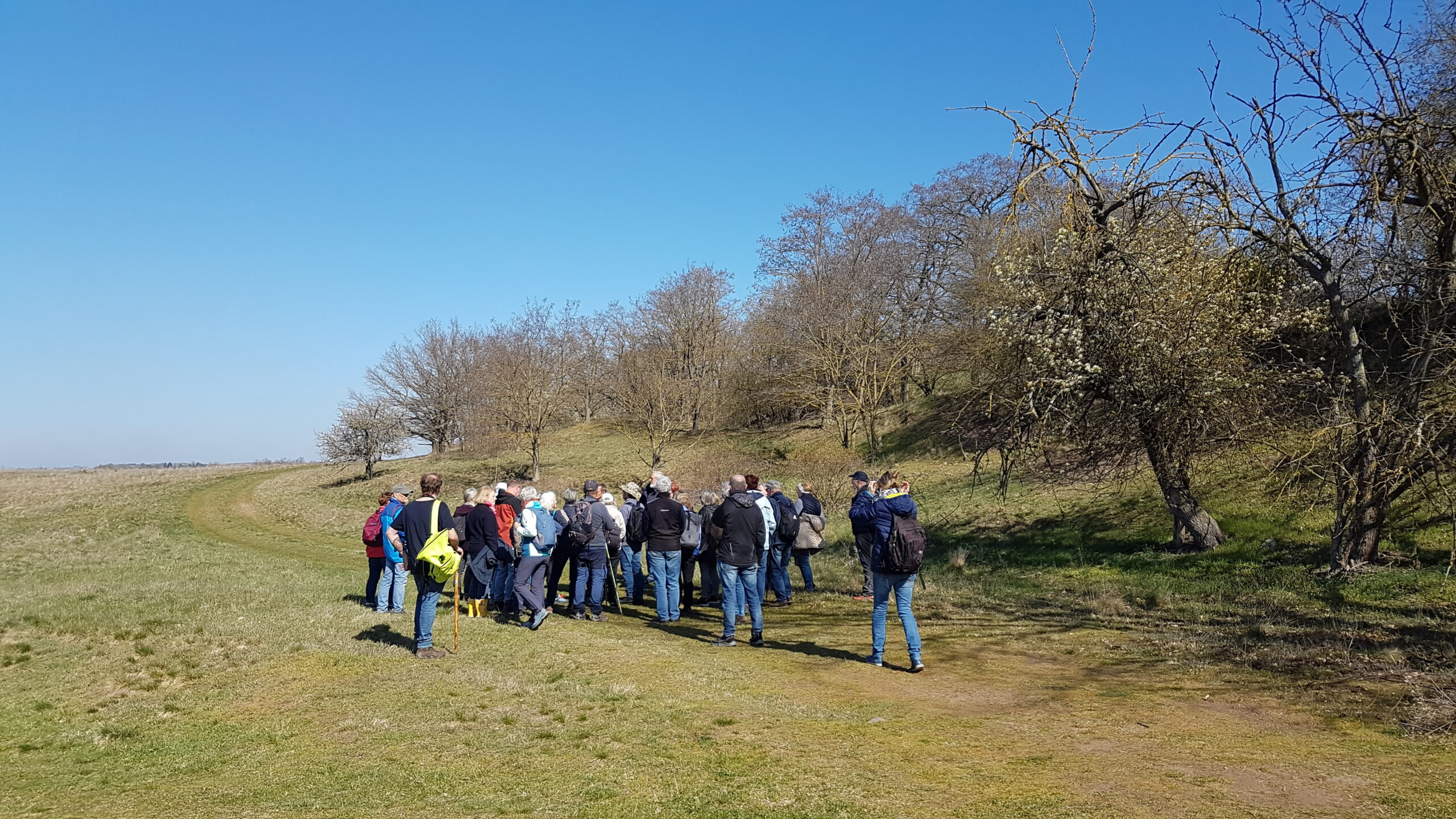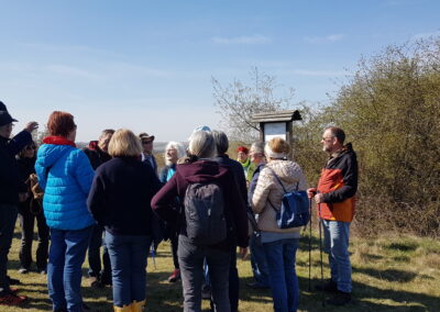 Am 11. April wanderten 32 Naturbegeisterte durch die Porphyrlandschaft zwischen Döblitz Mücheln und Gimritz. Im Rahmen der gemeinschaftlich vom Förderverein Kultur und Geschichte Döblitz und dem Naturpark Unteres Saaletal durchgeführten Frühlingswanderung zu den Kuhschellen wurde die für den Naturschutz sehr bedeutsame Landschaft auf einsamen Pfaden durchstreift. Zahlreiche Objekte der historisch gewachsenen Kulturlandschaft konnten dabei bestaunt werden. Zum Abschluss wurden natürlich auch die charakteristischen Pflanzen, nach der die Wanderung benannt ist, auf einem Porphyrhügel in der Nähe des kleinen Dorfes Döblitz gefunden. Deutlich wurde wieder einmal, wie bedeutsam aber auch schutzbedürftig diese durch spezifische Vegetationsstrukturen und einen besonderen geologischen Untergrund geprägte Landschaft ist.