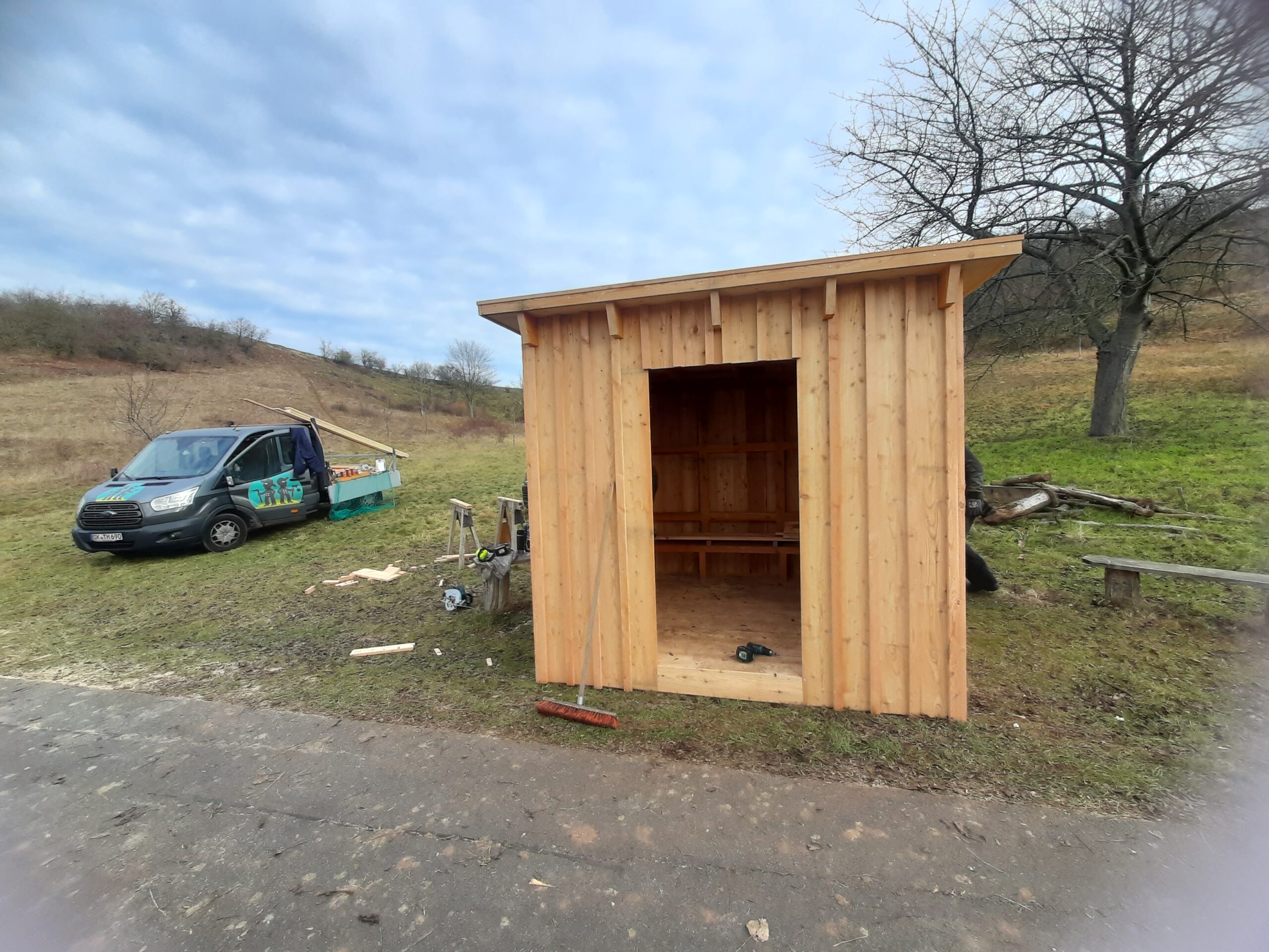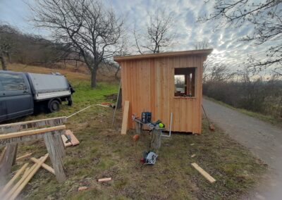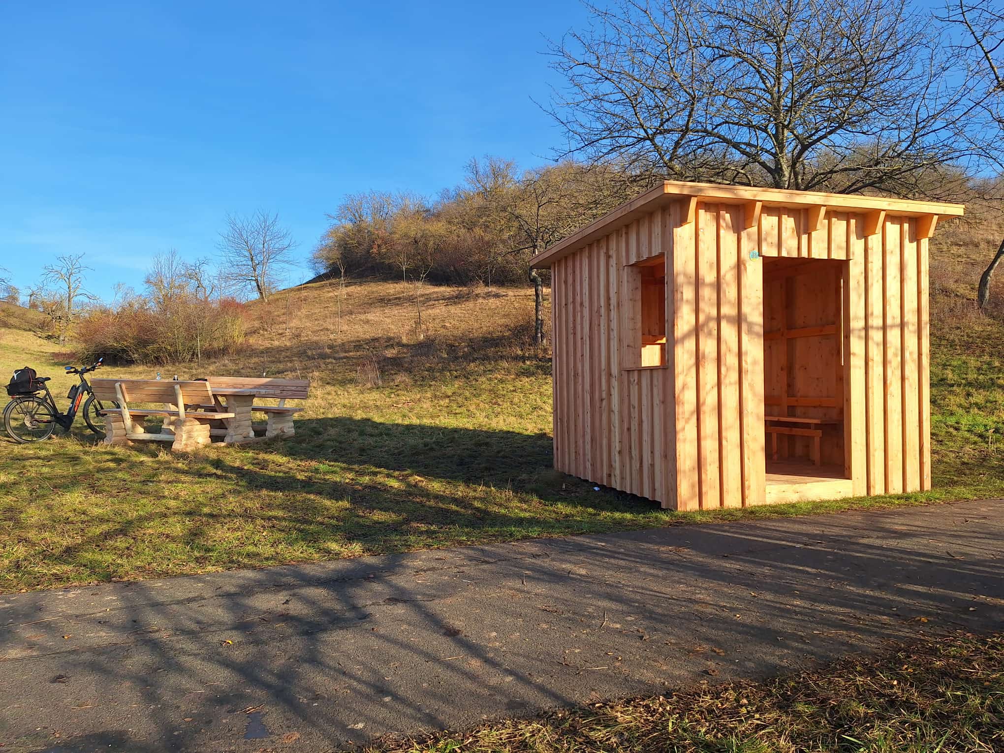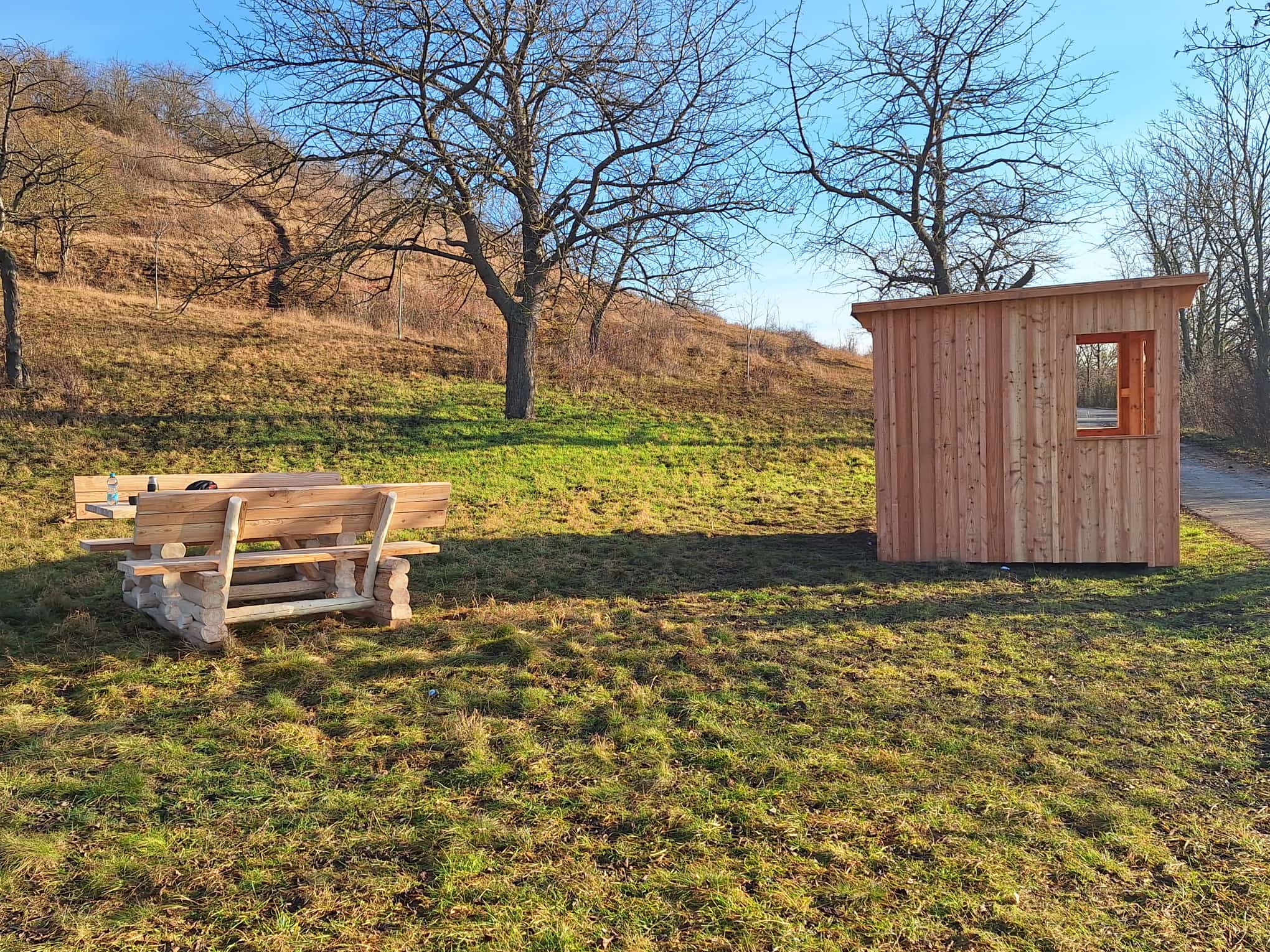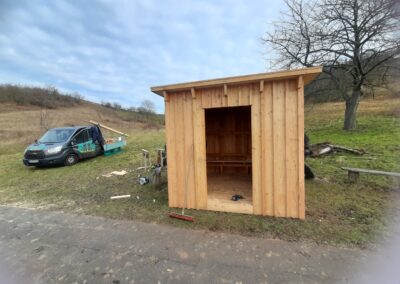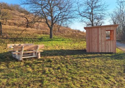 Ende 2025 wurde direkt am Saaleradweg eine Schutzhütte errichtet. Die Schutzhütte soll eine gezielte Möglichkeit für Wandere und Radfahrer bieten bei Schlechtwetterereignissen die Möglichkeit zum Unterstellen und Verweilen zu haben. Die Lage der Schutzhütte ist direkt am Saaleradweg bei Könnern am sog. Kirschberg. Neben der Schutzhütte wird auch eine Sitzgelegenheit aufgestellt, sodass eine Rastmöglichkeit sowohl bei schönem als auch bei schlechtem Wetter gegeben ist. 2026 wird in der Schutzhütte ein Informationstafel angebracht, die Informationen zum Naturpark gibt. Neben der Sitzgelegenheit wird es Informationen zur angrenzende Streuobstwiese geben. Die Maßnahme wurde aus PEK-Mittel finanziert.
